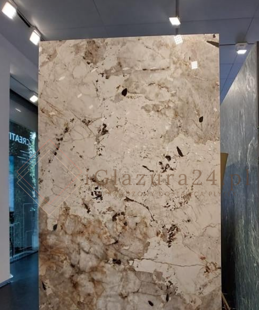 Die Natur-Stimmung Tundra glänzend Fliese in den großzügigen Maßen 120x280x0,6 cm vereint die Schönheit von Naturstein mit modernen Design-Trends. Diese exquisite Feinsteinzeug-Fliese bietet nicht nur eine beeindruckende Optik, sondern auch eine herausragende Funktionalität für Ihr Zuhause.